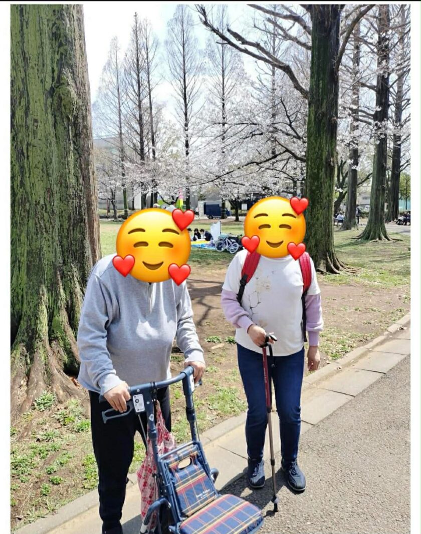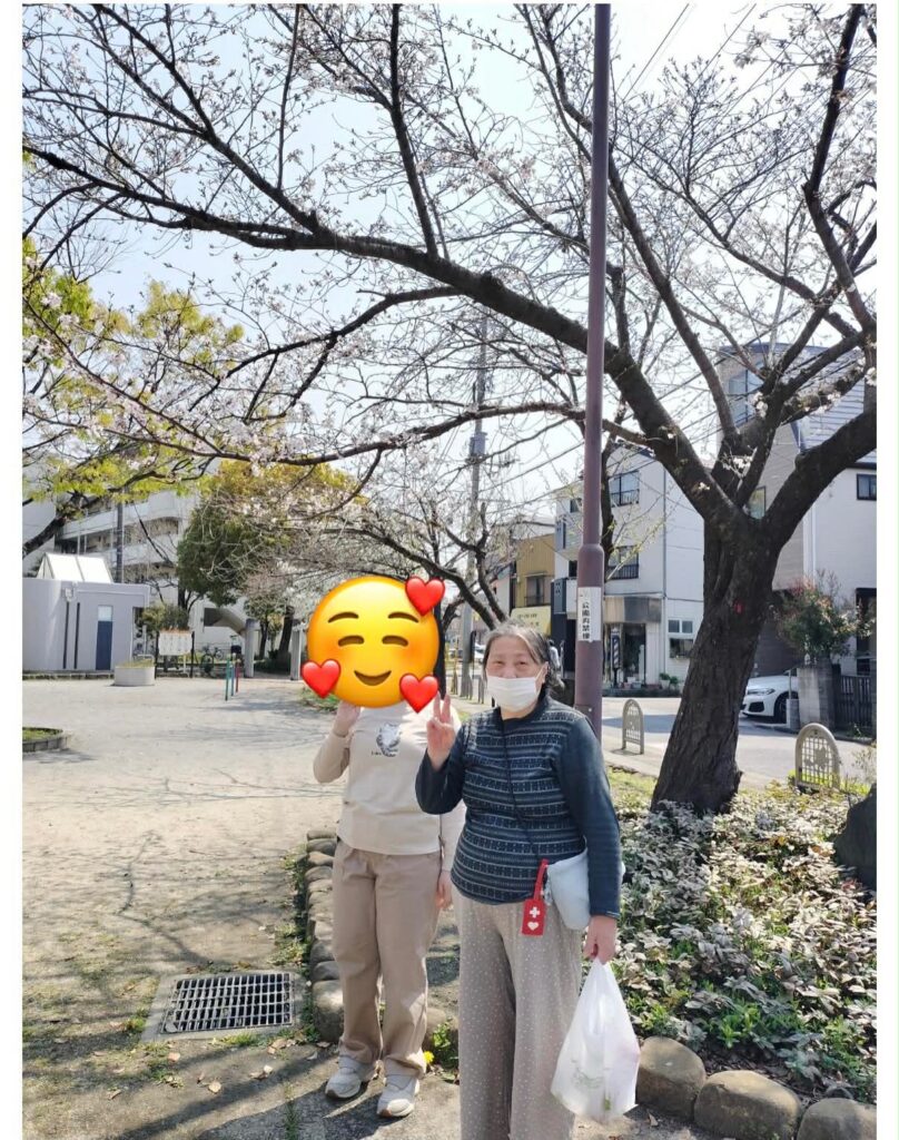 暖かな日差しの中、利用者さんと一緒に公園へお出かけし、お花見を楽しみました。